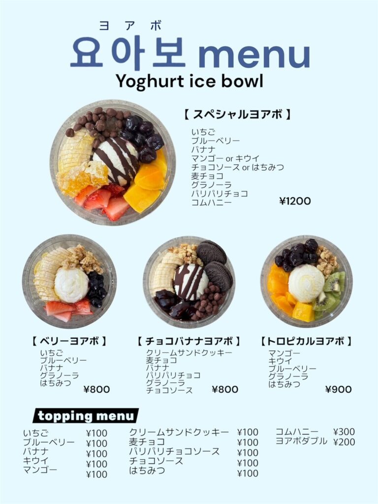 | カスタムボウル ・フルーツ等、自分好みに カスタムできます | ¥1,200 |